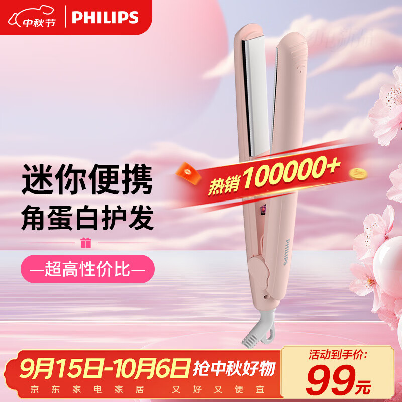 飞利浦(PHILIPS)电卷发棒 直板夹 卷直两用 疏松发根刘海夹 迷你学生HP8401粉色